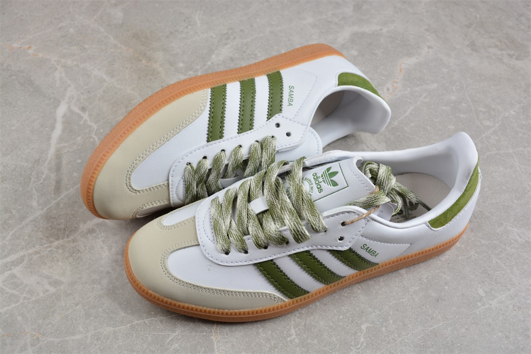 کتونی آدیداس سامبا سفید سبز / adidas Samba Athletic White Tech Olive