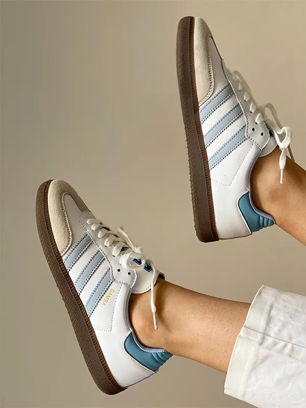 ست کردن کتونی آدیداس سامبا سفید آبی روشن