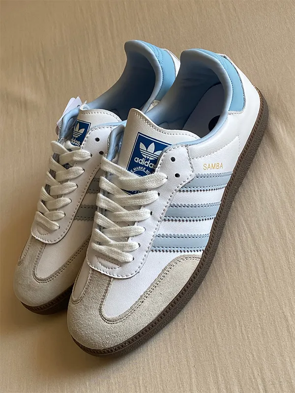 کتونی آدیداس سامبا آبی روشن رنگ آبی در کنار سه خط سفید، این مدل را به یکی از شیکترین نسخههای samba تبدیل کرده است. اگر دنبال کتونیای هستید که هم کلاسیک باشد، هم خاص و هم بهراحتی در استایل روزمره بدرخشد، این مدل دقیقاً برای شما طراحی شده.
