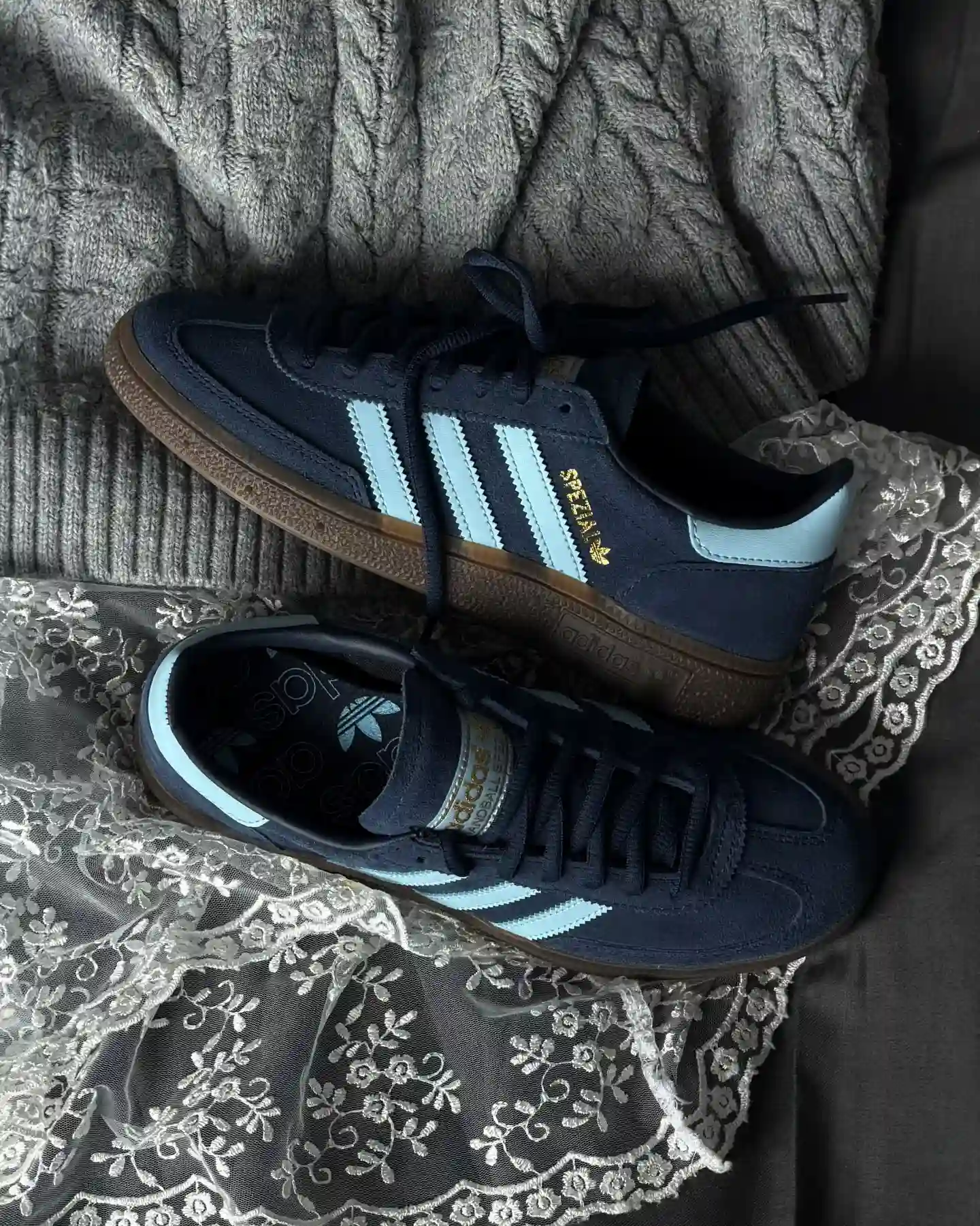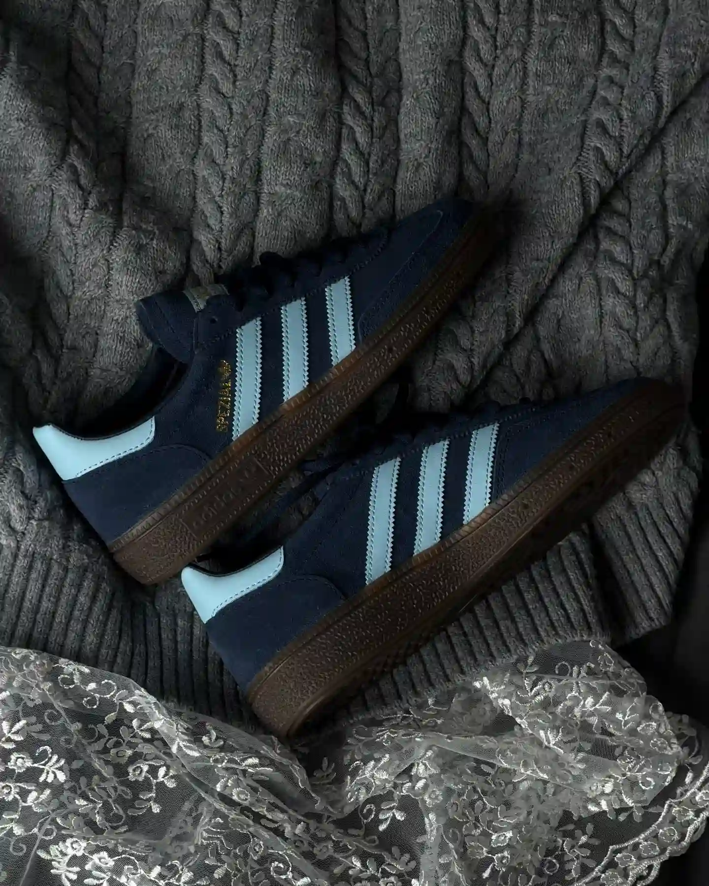 در طراحی Adidas Spezial navy blue وفاداری به DNA کلاسیک اسپیزال کاملاً حفظ شده، اما بازی رنگها آن را از مدلهای ساده متمایز میکند.